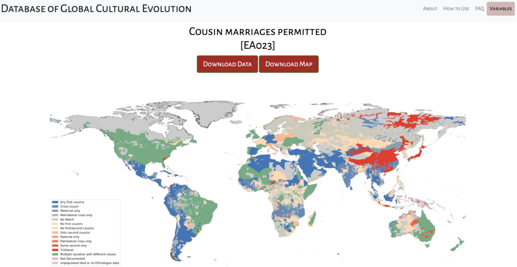 The Database of Global Cultural Evolution links historical data on cultural practices to contemporary populations around the world.